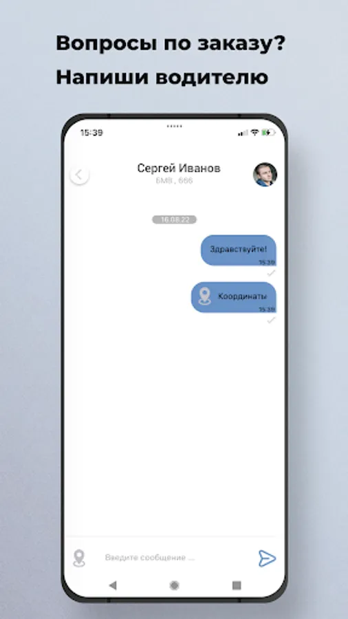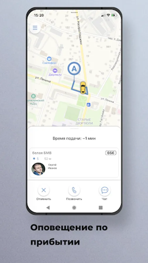 Use the option “Call a taxi for someone else” in the “Wishes” section and indicate his phone number. When the taxi arrives, an SMS will be sent to the specified number, and you will receive a message in the application.