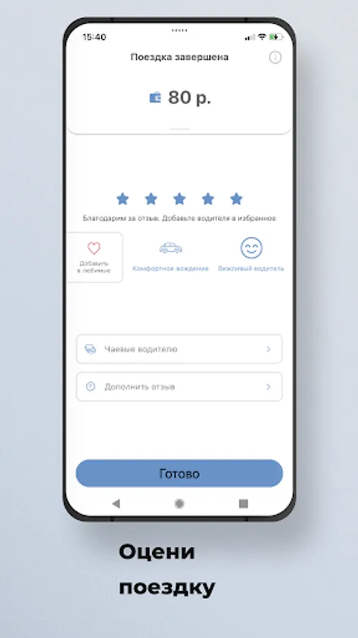 Rate the driver, write a review, or select a reaction from ready-made templates.