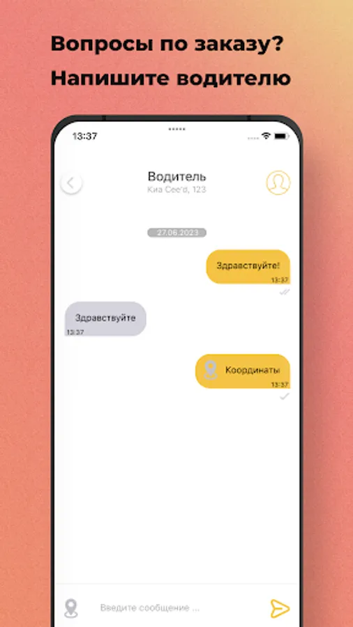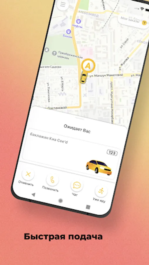 Use the option “Call a taxi for someone else” in the “Wishes” section and indicate his phone number. When the taxi arrives, an SMS will be sent to the specified number, and you will receive a message in the application.