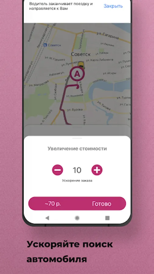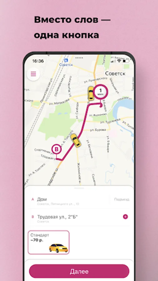 Order Taxi Baltika in the cities Sovetsk and Gusev through the application. It's 3 times faster than by phone! Between the desire to get to the right place and the search for a car - a couple of seconds.