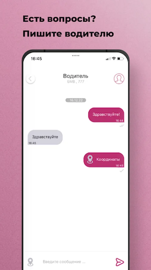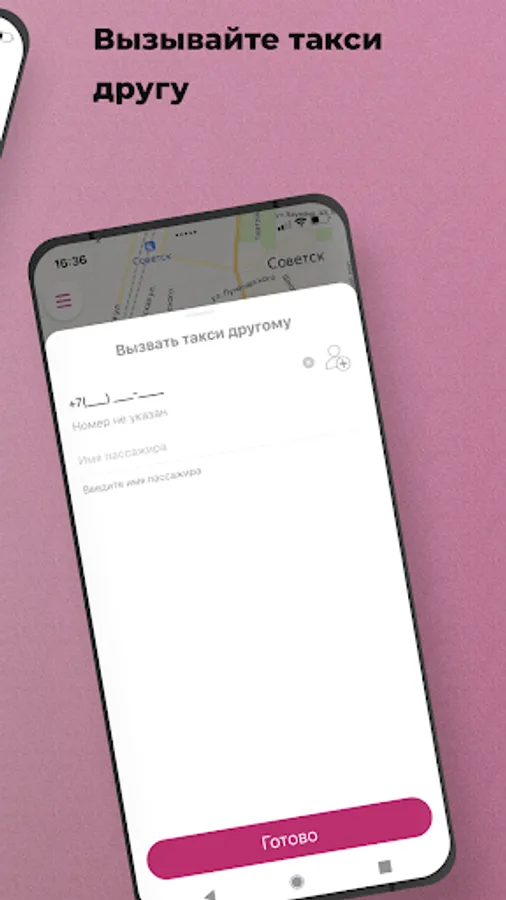 Use the option “Call a taxi for someone else” in the “Wishes” section and indicate his phone number. When the taxi arrives, an SMS will be sent to the specified number, and you will receive a message in the application.