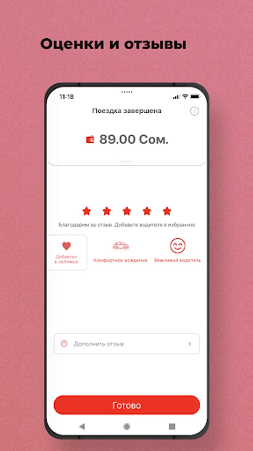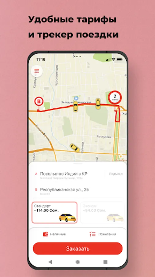 📱 Follow your trip on the map. The application will report the pickup time, brand, color, car number, as well as the name of the driver.