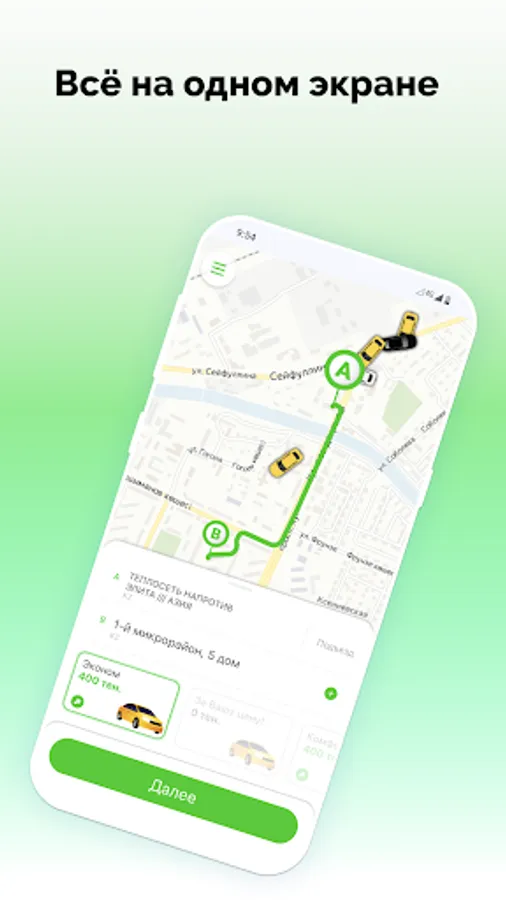 The Dostar application is a quick and convenient way to order a taxi. Just a couple of taps on the screen and the car is already on its way to you!