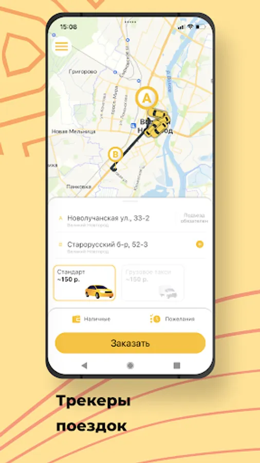 Order Taxi Six fives in the city of Veliky Novgorod through the application. It's 3 times faster than by phone! Between the desire to get to the right place and the search for a car - a couple of seconds.
