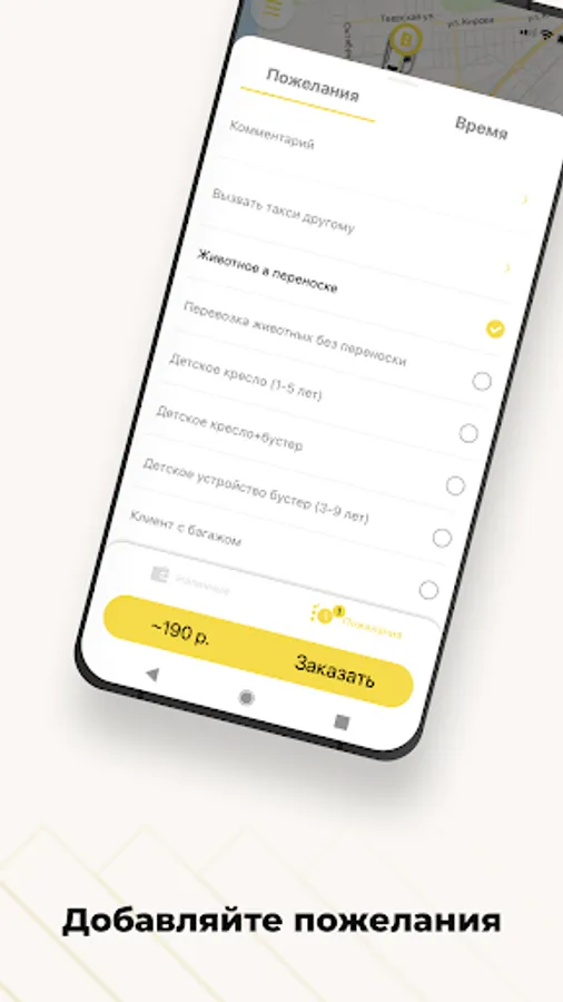 Add wishes to the order, write a comment to the driver, speed up the search for a car.