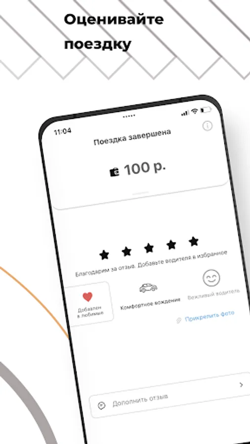 Rate your trip with ready-made templates. Add the driver to "Favorites" if you liked the trip. Attach a photo to a review or view payment details after a trip.