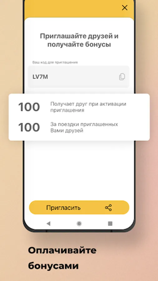 Invite friends to the app and earn bonuses using the referral system. Pay with them and save on travel.