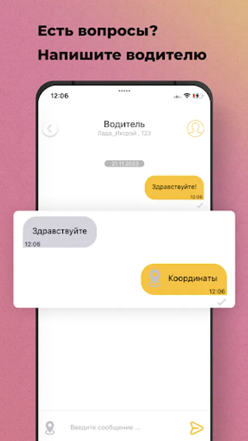 Use the “Call a taxi for someone else” option in the “Wishes” section and indicate his phone number. When the taxi arrives, an SMS will be sent to the specified number, and you will receive a message in the application.