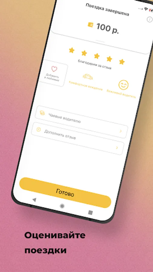 The delivery address will be determined automatically. All you have to do is indicate where you will go. Use templates with addresses and settings that you use most often to order a taxi in a couple of clicks.