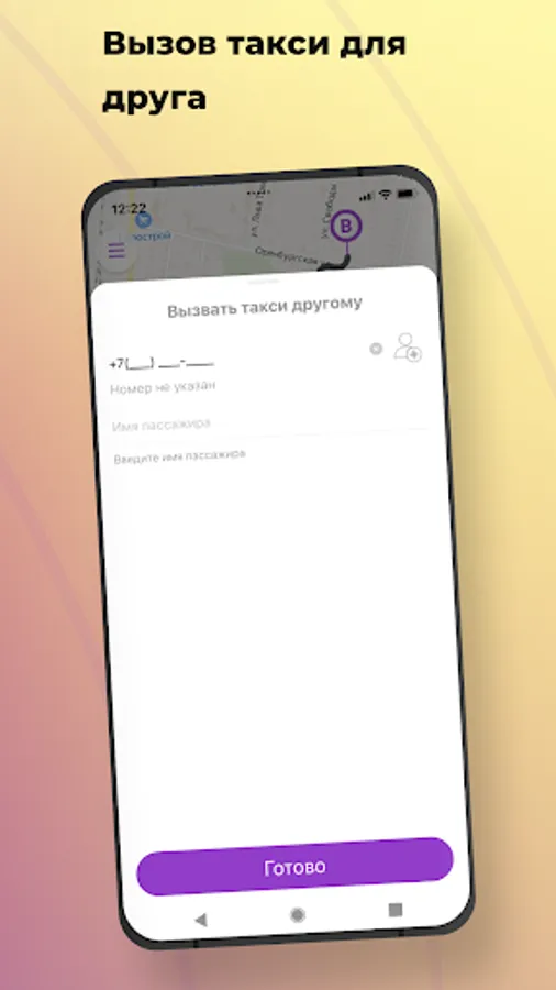 Use the option “Call a taxi for someone else” in the “Wishes” section and indicate his phone number. When the taxi arrives, an SMS will be sent to the specified number, and you will receive a message in the application.