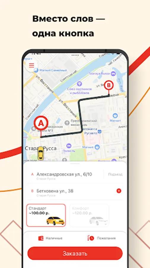 Order a taxi City Plus in the city Staraya Russa through the application. It's 3 times faster than by phone! Between the desire to get to the right place and the search for a car - a couple of seconds.