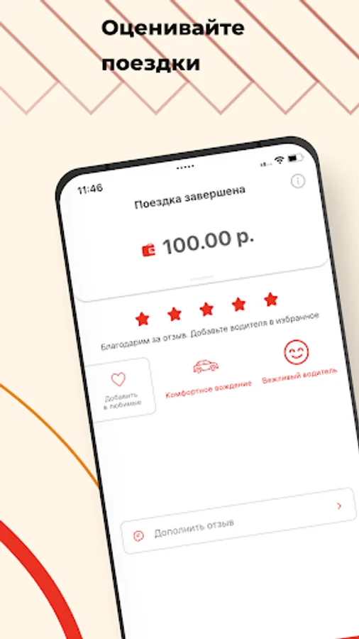 Rate the driver, write a review, or select a reaction from ready-made templates.