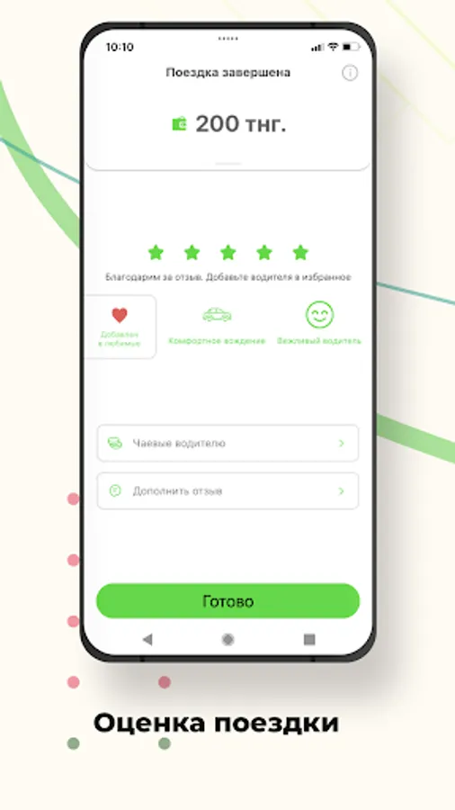 Rate your trip with ready-made templates. Add the driver to your favorites if you liked the trip, or thank him with a tip.