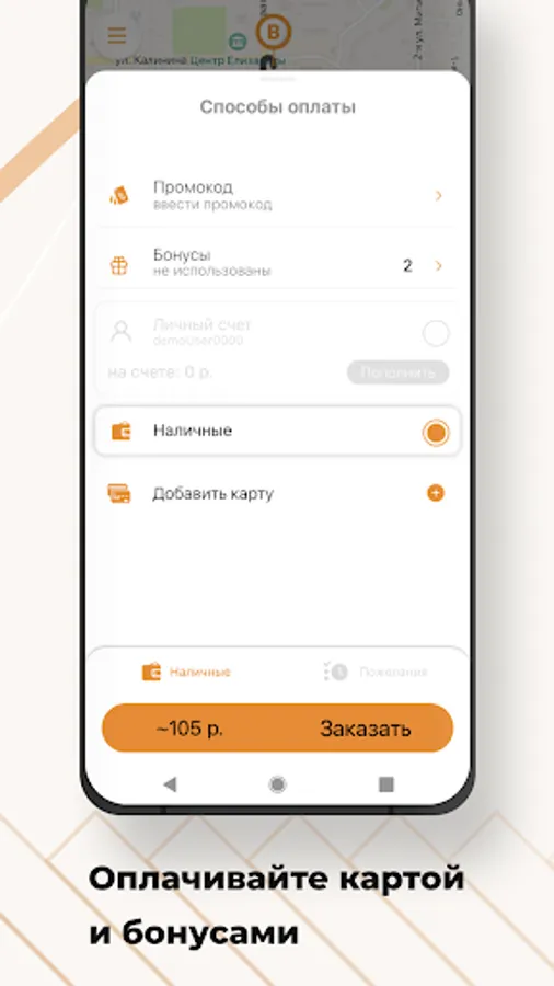 Select the "Pre-order" option. The car search will start shortly before the trip order, and the car will arrive at the appointed time. Also, you will know in advance the cost of the trip.