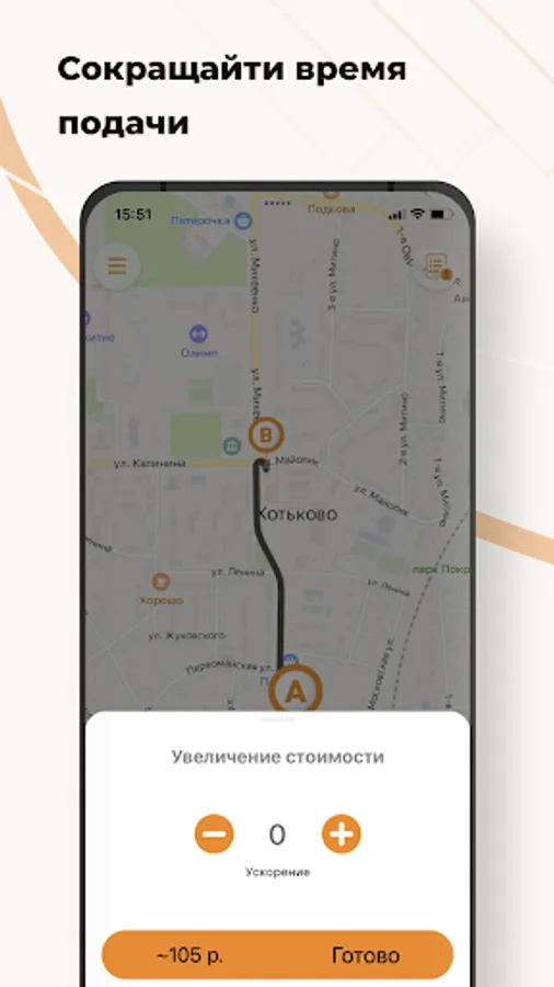 Order a taxi Drive in the cities of Khotkovo, Sovetsk and Krasnodar through the application. It's 3 times faster than by phone! Between the desire to get to the right place and the search for a car - a couple of seconds.