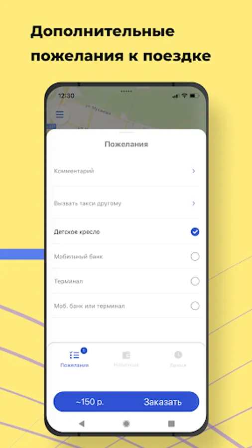 Use the option “Call a taxi for someone else” in the “Wishes” section and indicate his phone number. When the taxi arrives, a call will be sent to the specified number, and a message will be sent to you in the application.
