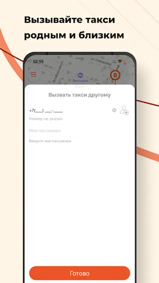 Use the option “Call a taxi for someone else” in the “Wishes” section and indicate his phone number. When the taxi arrives, an SMS will be sent to the specified number, and you will receive a message in the application.