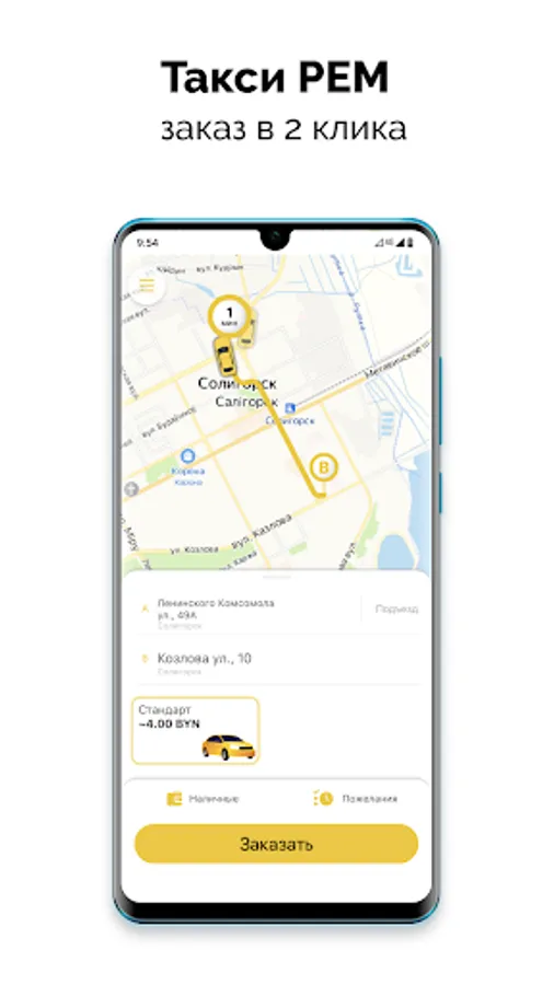 Install the Taxi REM application now and use the modern service to order a taxi in the cities: Soligorsk, Slutsk, Lyuban, Mikashevichi, Starobin.