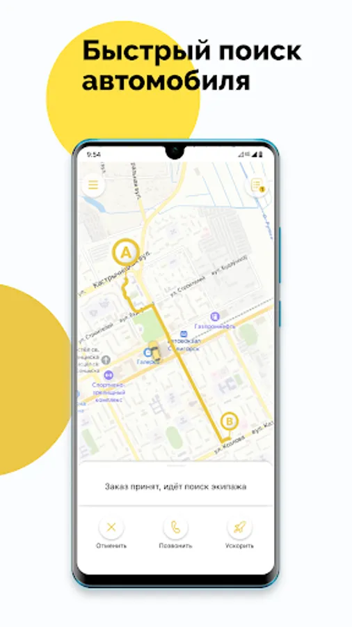 The REM Taxi application displays the movement of the car towards you and all information on the order: the make and number of the car, information about the driver, as well as the estimated time of arrival.