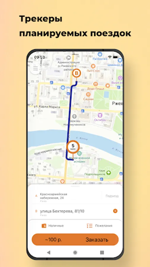 Select the "Pre-order" option. The car search will start shortly before the trip order, and the car will arrive at the appointed time. Also, you will know in advance the cost of the trip.