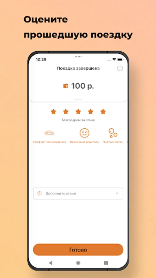 Rate the driver, write a review, or select a reaction from ready-made templates.
