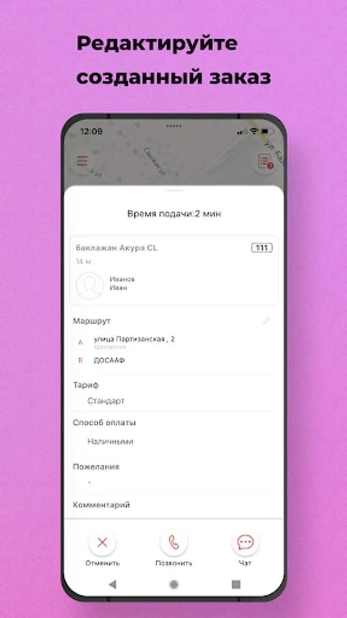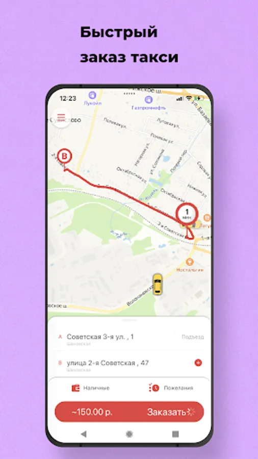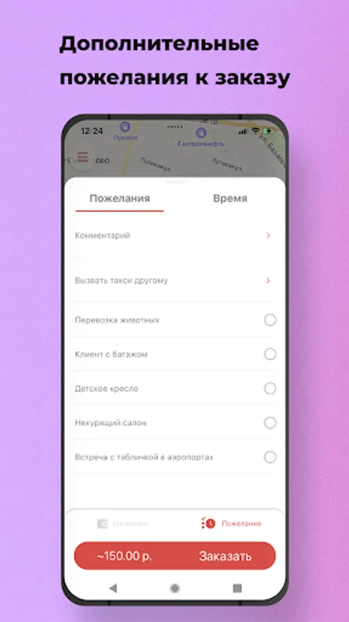 📱 Follow your trip on the map. The application will report the pickup time, brand, color, car number, as well as the name of the driver.