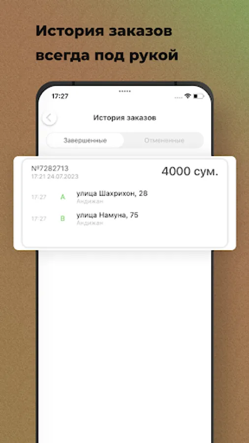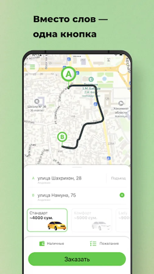 Order ARZONI BIZDA TAXI in Andijan region through the application. It's 3 times faster than by phone! Between the desire to get to the right place and the search for a car - a couple of seconds.