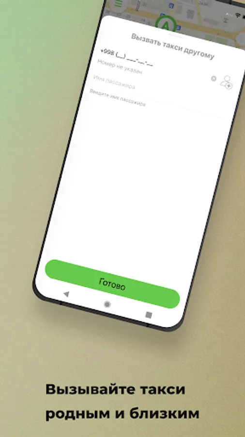 Use the option “Call a taxi for someone else” in the “Wishes” section and indicate his phone number. When the taxi arrives, an SMS will be sent to the specified number, and you will receive a message in the application.