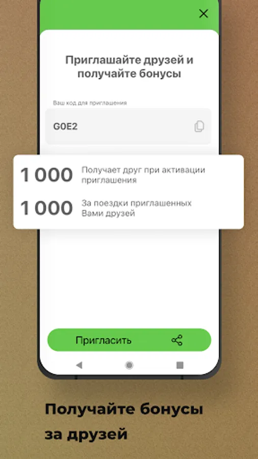 Invite friends to the app and earn bonuses using the referral system. Pay with them and save on travel.
