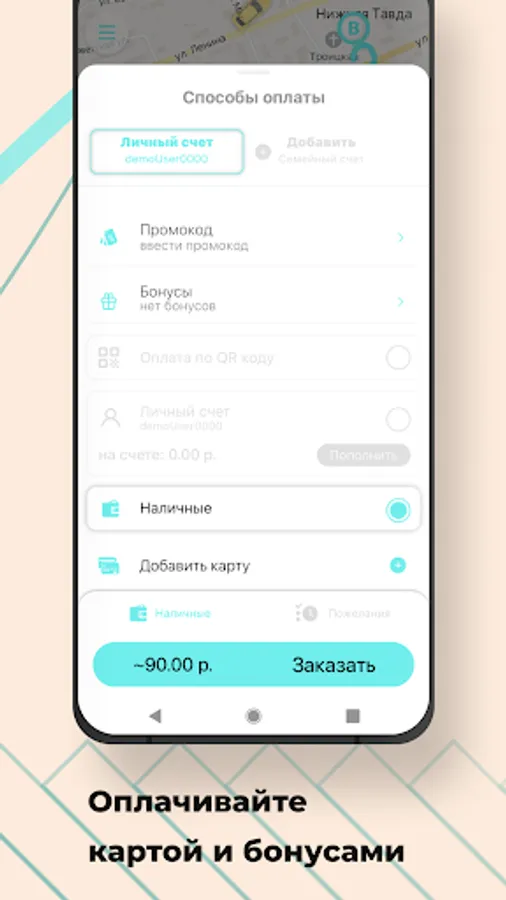 Pay for trips in cash, by card or accumulated bonuses. You can also pay for the trip through any banking application using a QR code.