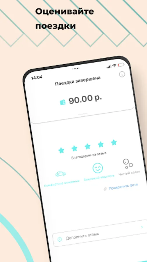 Rate the driver, write a review, or select a reaction from ready-made templates. Attach a photo to a review or view payment details after a trip.