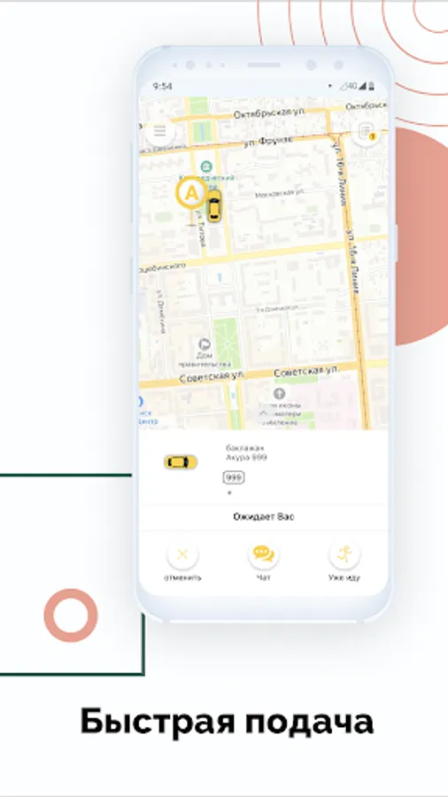 You always see on the screen full information about the order: time of delivery, make, color and number of the car, driver's name.