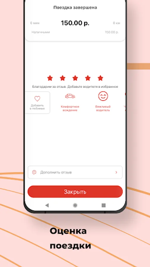 Rate your trip with ready-made templates. Add the driver to "Favorites" if you liked the trip.
