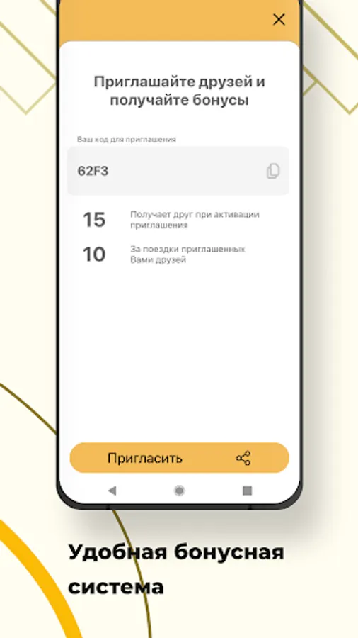 Invite friends with a referral code and get bonuses for their trips. Use bonuses to pay for taxi rides Taxi Minutka Taganrog.