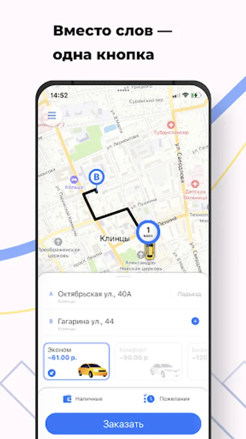 Order Prosto Taxi 377 377 in the cities Klintsy, Novozybkov, Unecha, Dyatkovo, Seltso through the application. It's 3 times faster than by phone! Between the desire to get to the right place and the search for a car - a couple of seconds.