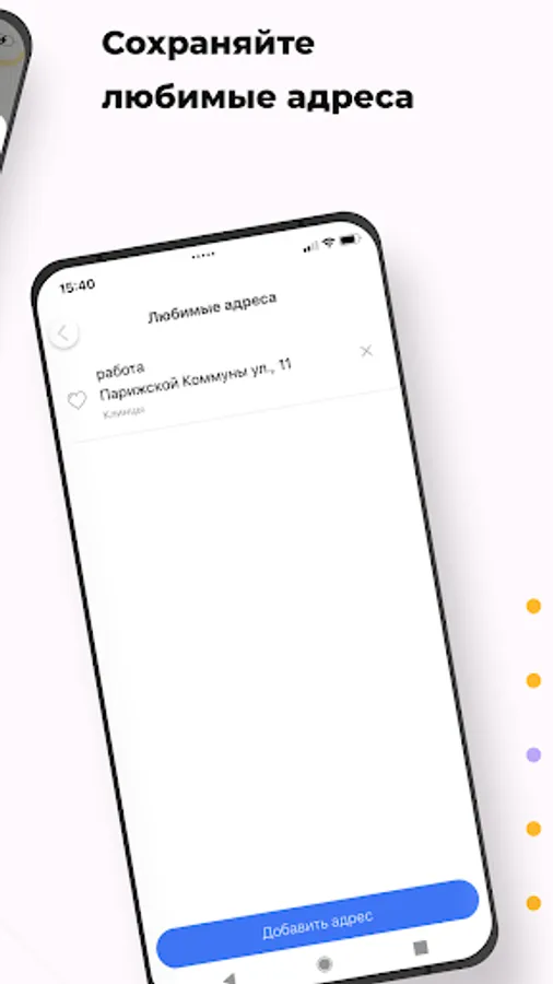 The delivery address will be determined automatically. You just need to indicate where you are going. Use templates with addresses and settings that you use most often to order a taxi in a couple of clicks.