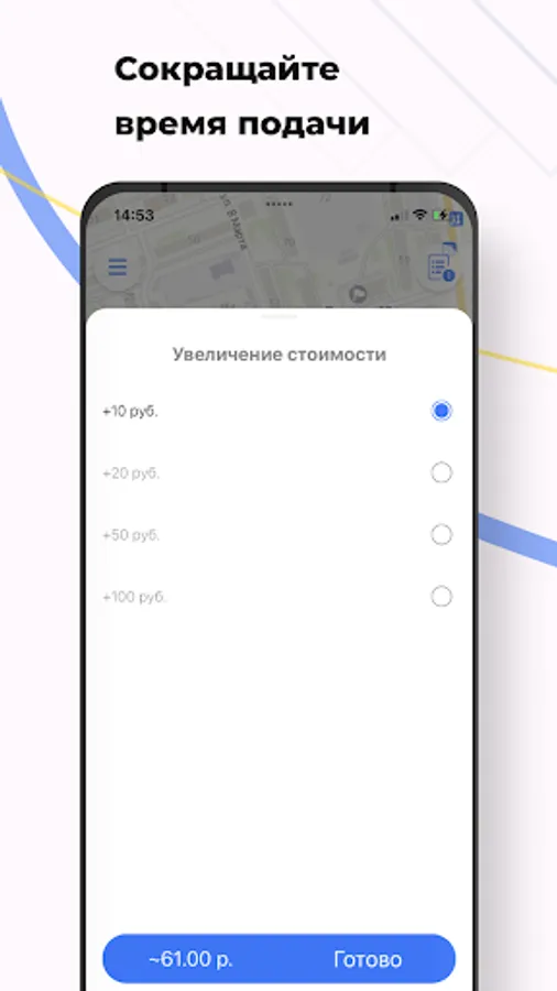 Going to a meeting during rush hour and can't find a car? Increase your order value. So the driver will pick up your order faster during high demand.