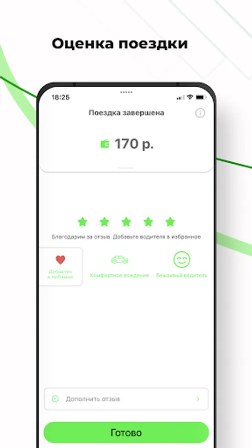 Rate your trip with ready-made templates. Add the driver to "Favorites" if you liked the trip.