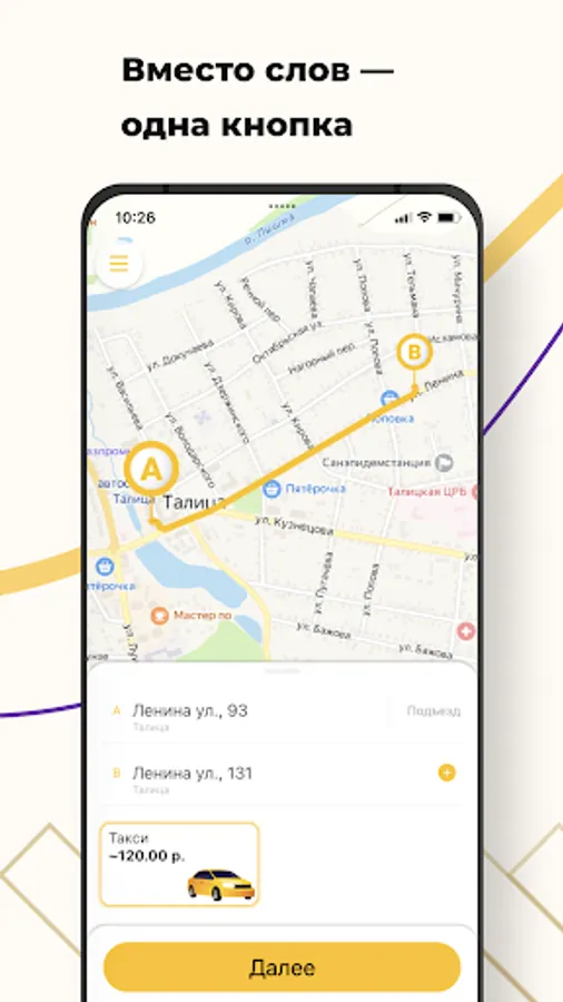 Download the Taxi Voyage application in 10 seconds and order a taxi in 2 clicks in Talitsa, Troitsky village and the Sverdlovsk region.