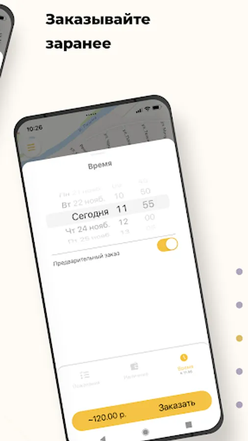 📱 Follow your trip on the map. The application will report the pickup time, brand, color, car number, as well as the name of the driver.