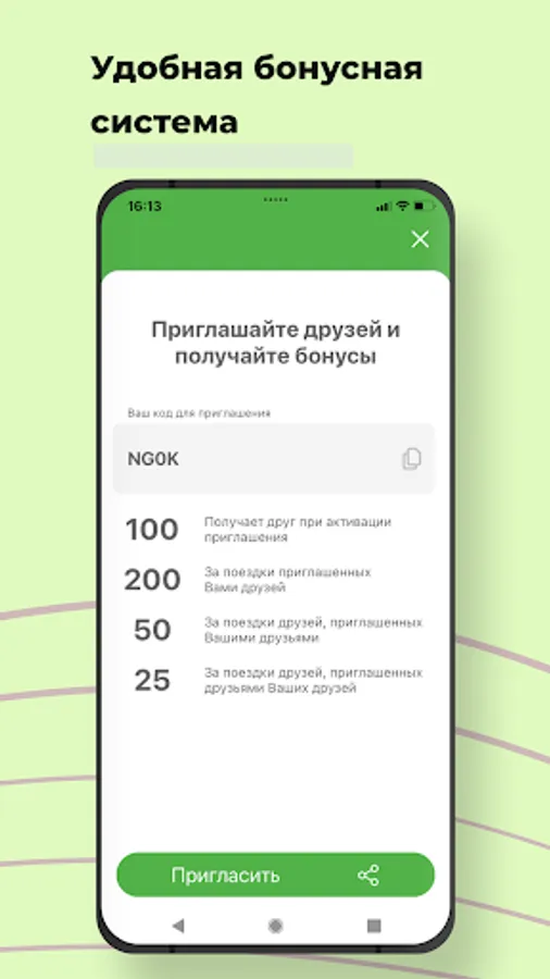 Using referral codes, invite friends and get bonuses for each, and then spend them to pay for trips. The number of bonuses can be distributed before creating an order. You can also save promotional codes and use them for profitable trips.
