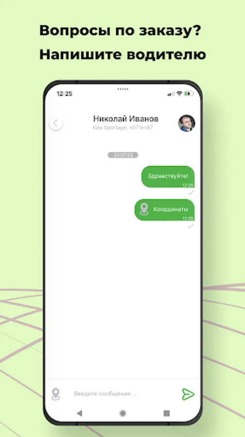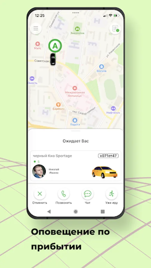 You always see full information about the order on the screen: delivery time, brand, color and number of the car, driver's name.