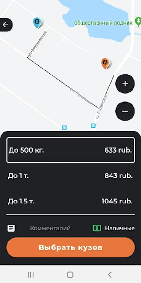 CUSTOMER - quickly and easily find carriers of goods nearby, quickly deliver goods (no more than 1.5 tons) at a low cost without affecting the quality of delivery.