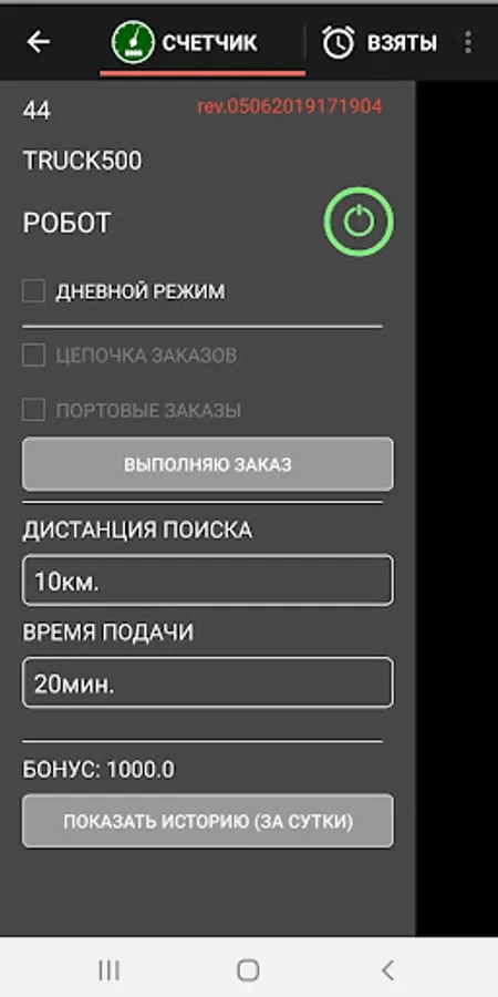 Taxigruzoff Driver - This is an automatic taximeter that calculates your freight traffic, and also helps you regularly receive the most profitable orders, both in automatic mode (robot function) and in manual mode.
