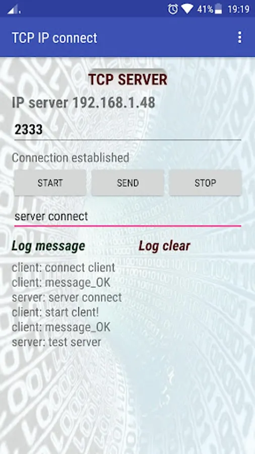 The application allows you to test the TCP IP connection between android devices or between the computer and the android devices located in the local network. If devices have static IP addresses then can test in internet network . Application can work as a server or as a client, in the settings you can select the appropriate configuration. The data is transmitted and received in UTF8 format. Any party can initiate data exchange, both the server and the client.
