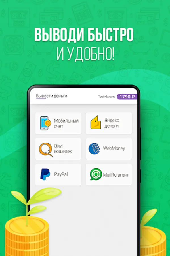 In addition to the fact of additional earnings without investments, you can feel the following advantages of our online application for Android: