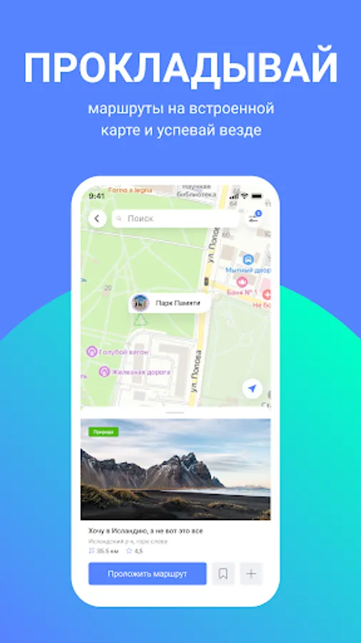 Share beautiful landscapes with your friends! Build cool routes in advance! Suggest new, little-known locations! Leave reviews and ratings about the places you visit! Add to favorites everything you want to watch! Relax at your own pace!