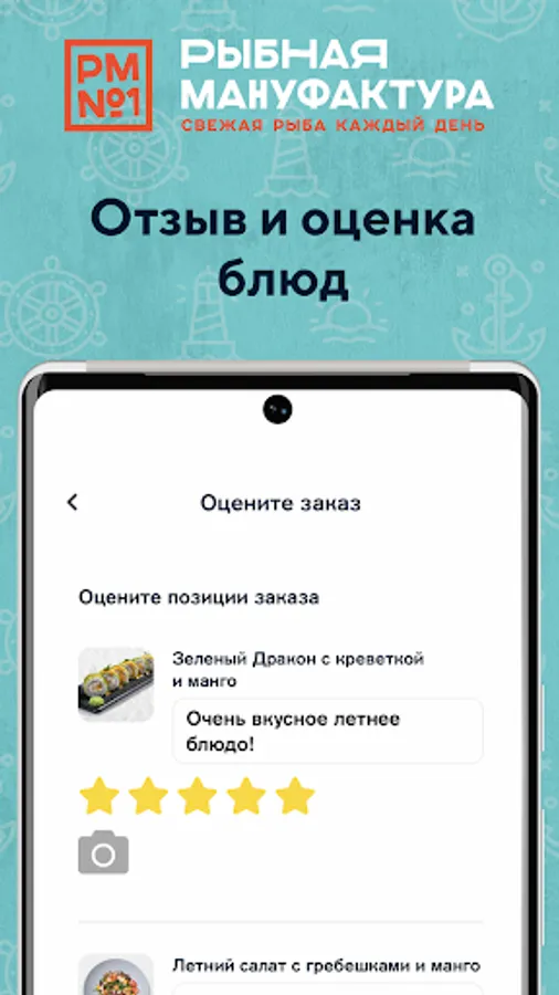 Fish Manufactory No. 1 is a unique network of fish bistros with affordable prices for fish and seafood dishes, a homely atmosphere and attentive service. In our application, you can place an order for a table while in a restaurant.