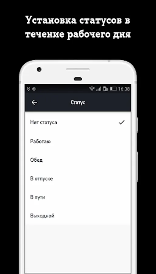 • set the current status (for example, "On the way", "Lunch", "Working");