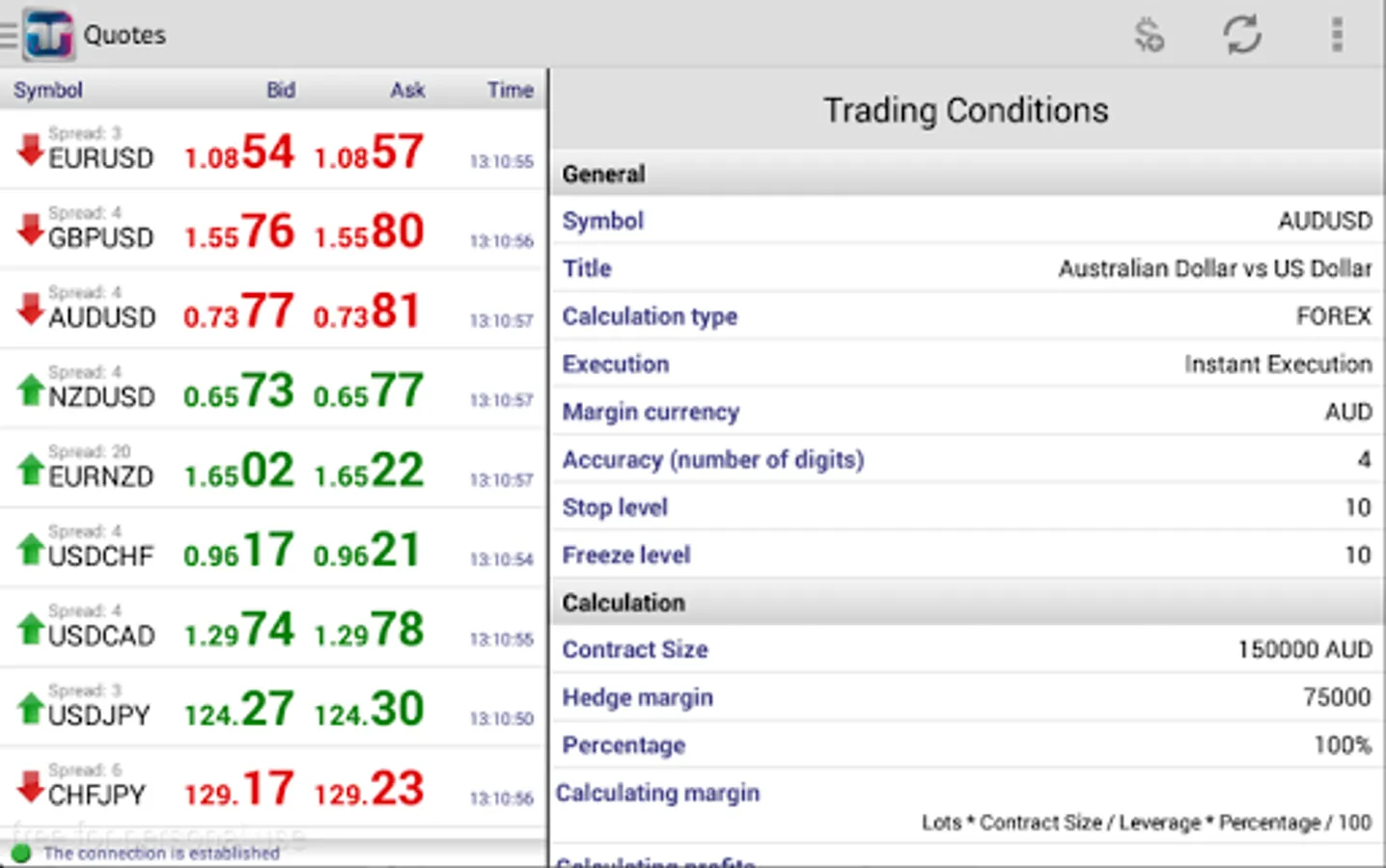 • Quotes for all major currencies with the list of displayed symbols and renewal period configuration